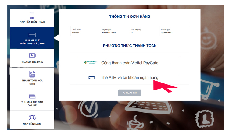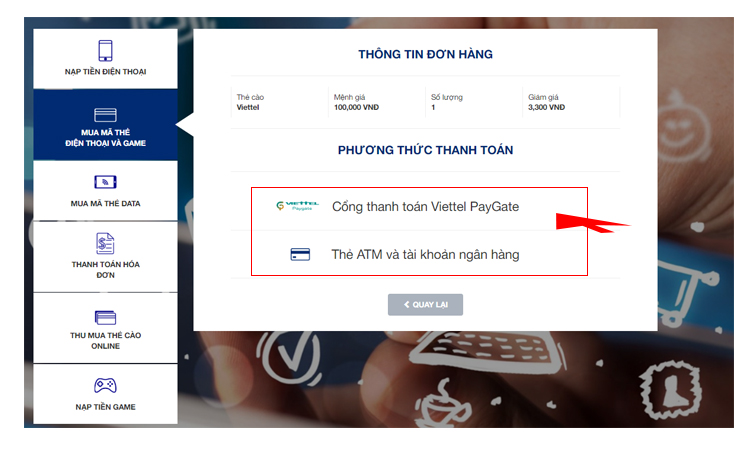 1. Thanh toán qua cổng Viettel PayGate
