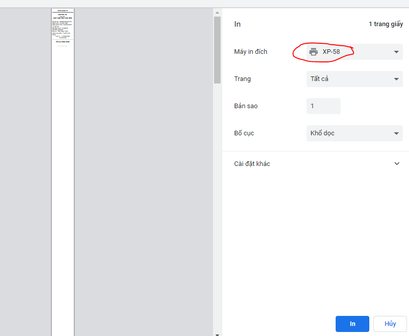 Bước 4.3: Cài đặt thuộc tính in.
