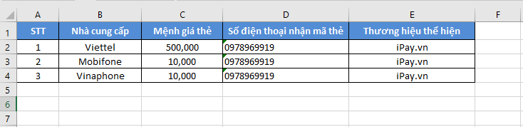 Hình: File mẫu mua thẻ Gửi thẻ cào qua SMS