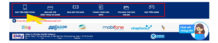 Bước 1: Quý khách hàng truy cập vào trang chủ theo link https://ipay.vn và chọn nạp tiền điện thoại.