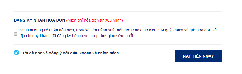 Khách hàng chọn vào mục "Tôi đã đọc và đồng ý với điều khoản và chính sách" mới đủ điều kiện thanh toán dịch vụ.