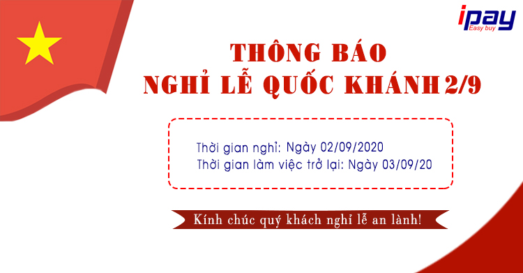 iPay xin gửi Quý khách lịch nghỉ lễ Quốc khánh 2/9/2020 cụ thể như sau: